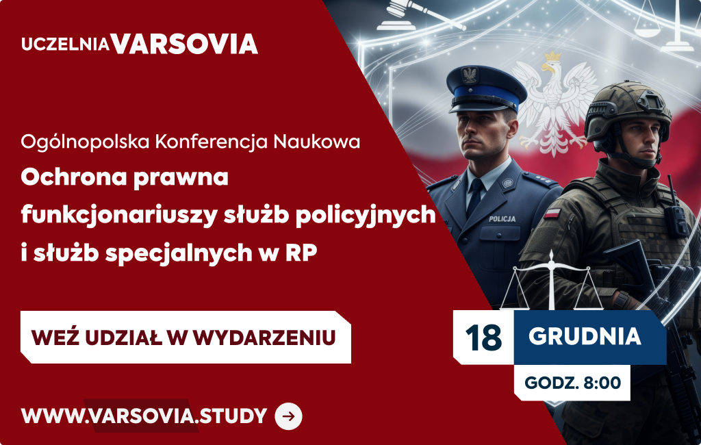 Uczelnia Biznesu i Nauk Stosowanych Varsovia zaprasza na Ogólnopolską Konferencję Naukową „Ochrona prawna funkcjonariuszy służb policyjnych i służb specjalnych w RP”.